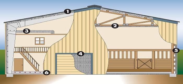 exposed ceilings to prevent heat build up in animal confinement and shop areas